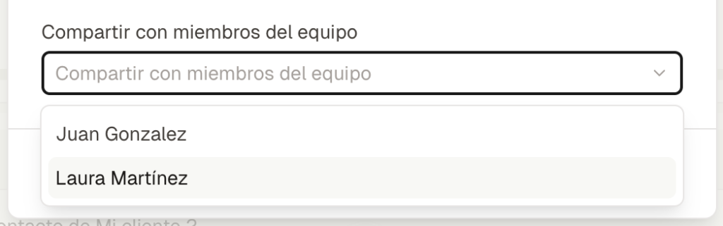 💡 Consejo: Comparte contactos cuando varios agentes trabajan con el mismo cliente. Así todos tienen la información actualizada.