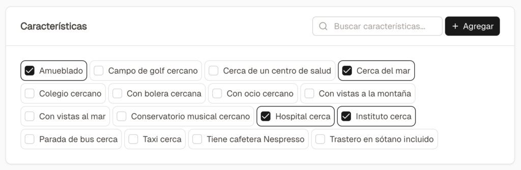 💡 Consejo: Si quieres editar las características, puedes hacerlo desde Administración > Características.